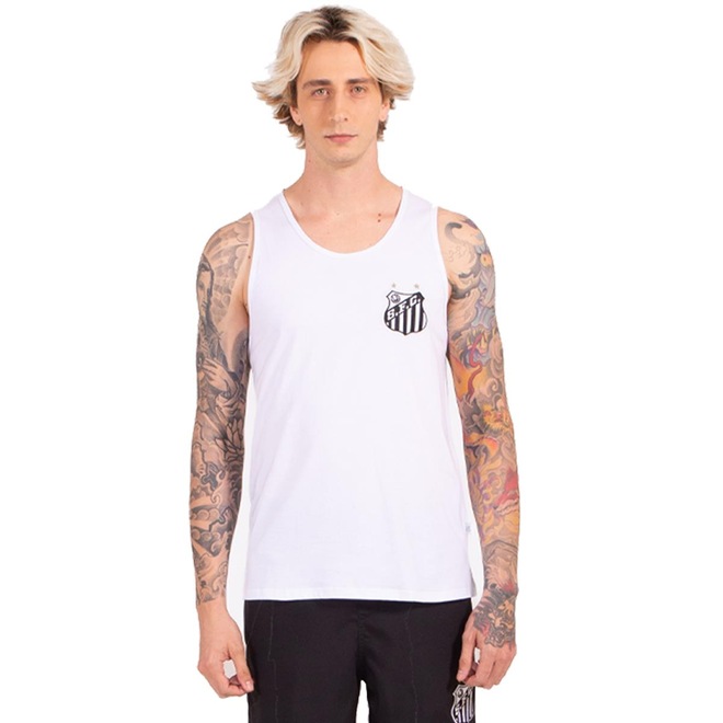Camiseta Regata licenciada Santos Masculina logo Bordado do lado esquerdo