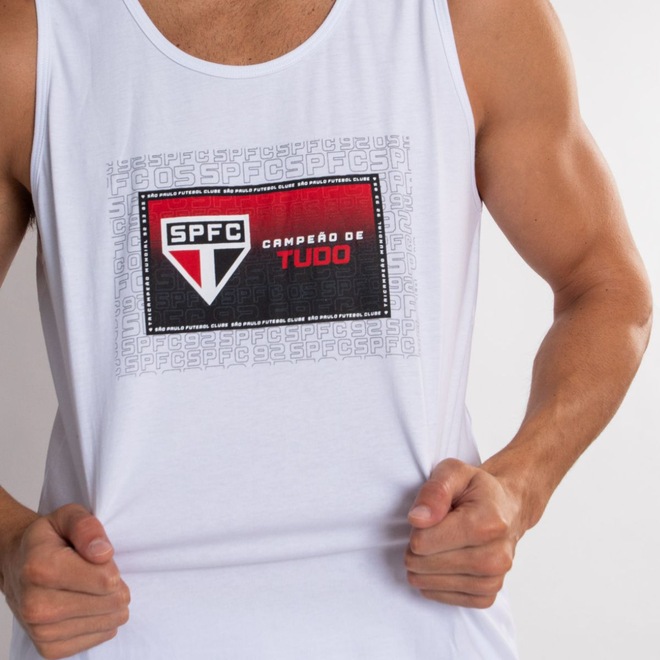 Leve o peso da história no peito com conforto e estilo! A Camiseta Regata Oficial São Paulo Campeão de Tudo celebra as grandes conquistas do Tricolor em uma peça leve, ideal para os dias mais quentes ou para quem curte um visual mais descontraído.