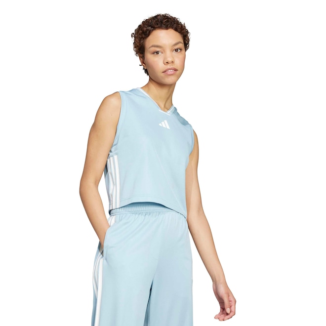 As icônicas Três Listras reforçam a autenticidade esportiva, enquanto o decote alto traz um toque moderno ao visual.