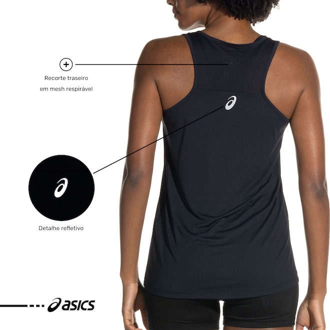 Detalhe refletivo.Recorte traseiro em mesh respirável.Não perca tempo e compre já sua regata feminina ASICS!