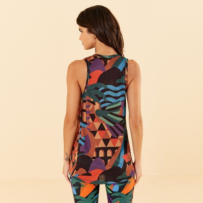 A camiseta regata Farm Gráfico combina moda e funcionalidade de uma maneira única e é perfeita para acompanhar seu estilo de vida ativa.