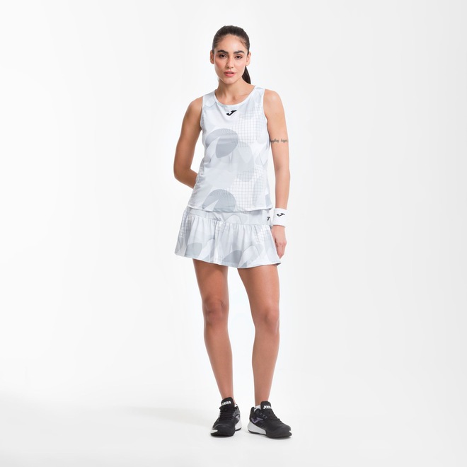 O corte é confeccionado em tecido piqué, que dá um toque muito elegante à peça. A malha elástica permite adaptação ao corpo do tenista e liberdade de movimentos. Foi adicionada uma sublimação que simula figuras em movimento para dar dinamismo e modernidade à camisa.