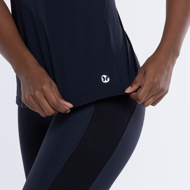 Com tecido Dry, ela proporciona rápida absorção do suor, mantendo o corpo seco e confortável.