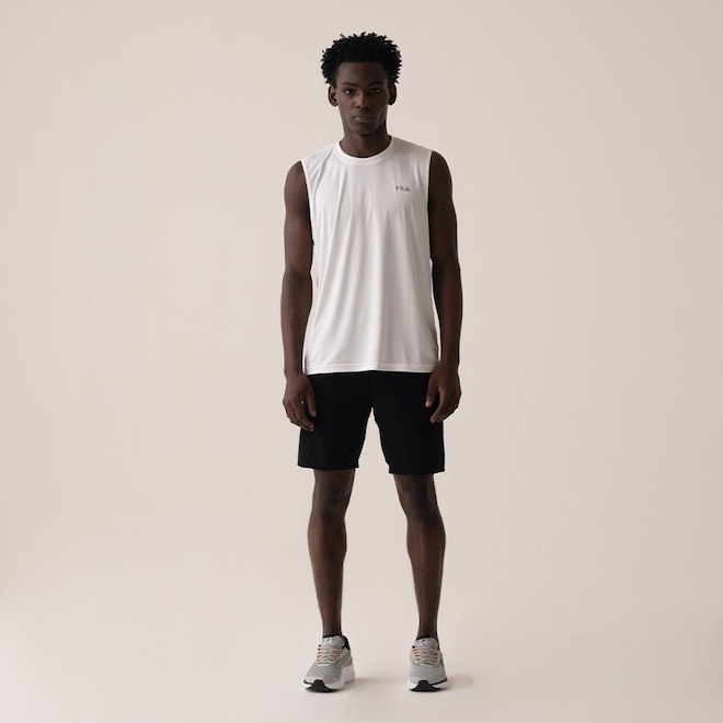 Camiseta Regata masculina confeccionada em malha tecnológica de poliéster, indicada para treinos de média e baixa intensidade. Modelagem regular com ombros largos e gola careca em ribana. A peça contém a tecnologia POLYGIENE, inovação que mantém o tecido fresco e limpo por mais tempo; a UV PROTECTION, que oferece proteção solar FPS 50+ dos raios UVA e UVB; e a FLOW, que mantém o corpo na temperatura ideal para a prática esportiva e fornece rápida secagem.ref: M17M0J