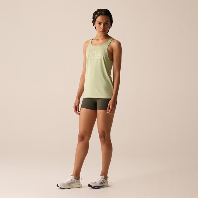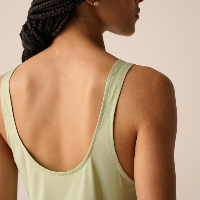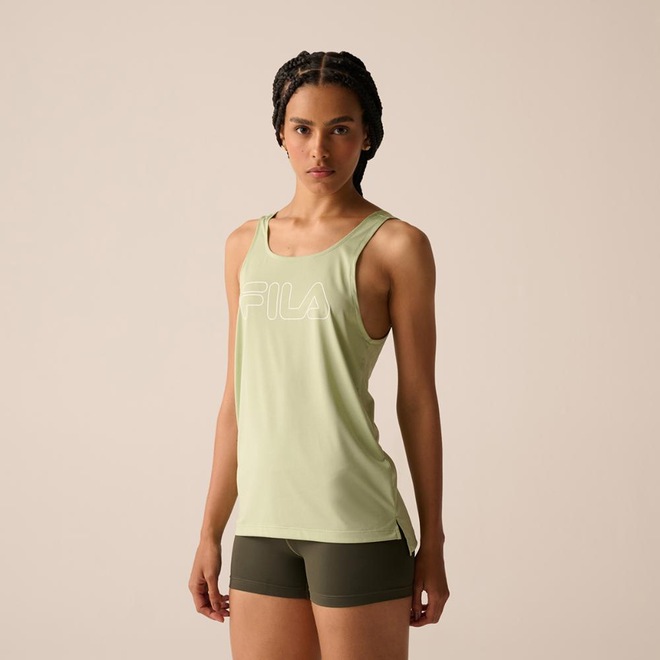 Camiseta Regata feminina confeccionada em malha leve de poliéster (50% reciclado), com aspecto flamê e toque macio, indicada para treinos de baixa e média intensidade. Modelagem comfort alongada com cavas mais amplas e aberturas laterais na barra, que oferecem mais mobilidade. Seu tecido contém a tecnologia FLOW, que mantém o corpo na temperatura ideal para a prática esportiva. Possui decote e cavas com acabamento em viés, barra traseira com comprimento maior que a barra frontal.ref: M17LZ1