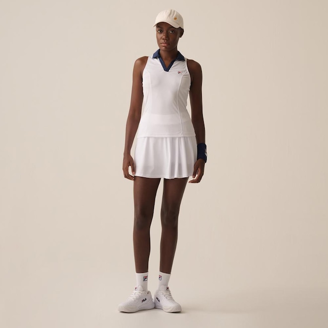 A Camiseta Regata Feminina FILA Camisa Polo Tennis Basic é produzida em malha de poliéster reciclado com elastano, unindo conforto, sustentabilidade e performance. Possui modelagem slim fit e conta com tecnologias Flow e proteção solar FPS 50+. O design inclui decote, gola e cobregola no mesmo tecido do corpo, além de recortes deslocados para a frente que garantem ajuste anatômico. Finalizada com acabamento em duas agulhas na barra e o icônico F-Box FILA aplicado no lado esquerdo do peito.ref: M17LZV