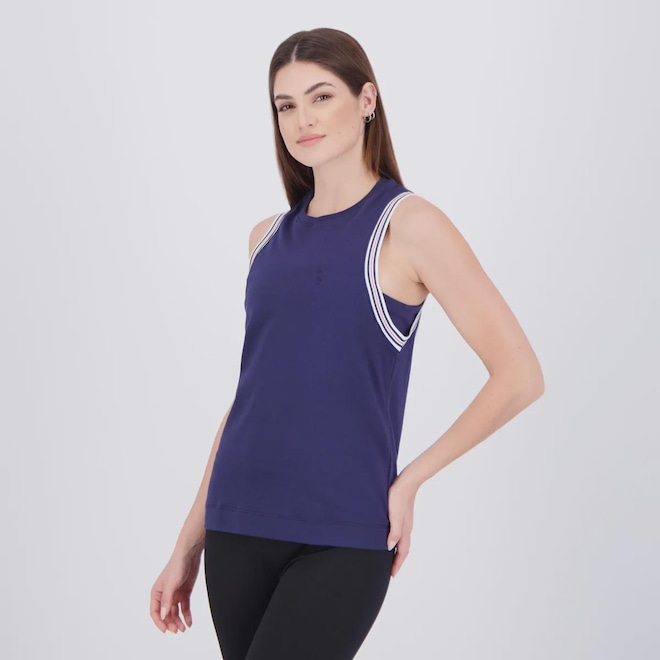 Composição: 96% Algodão e 04% Elastano Cor predominante: Marinho Indicado para: Casual Gênero: Feminino Origem: Nacional Logo: Bordada Manga: Regata Gola: Careca Dimensões aproximadas (A x L): EP: 57 x 40 cm PP: 59 x 42 cm P: 61 x 44 cm M: 63 x 46 cm G: 65 x 48 cm GG: 67 x 50 cm EG: 69 x 52 cm EEG: 71 x 54 cm EEEG: 73 x 56 cm EEEEG: 75 x 58 cm 7G: 77 x 60 cm