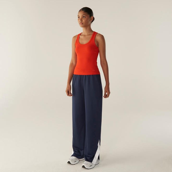 Regata feminina produzida em malha de viscose com elastano sustentável, derivada de fonte renovável. Na modelagem slim fit e com tecido meia malha canelado, a peça apresenta decote e cavas com debrum, trazendo um toque refinado ao seu design. A assinatura da marca é destacada pelo logo FILA Linear bordado na barra, adicionando autenticidade ao modelo.