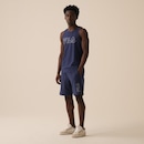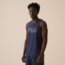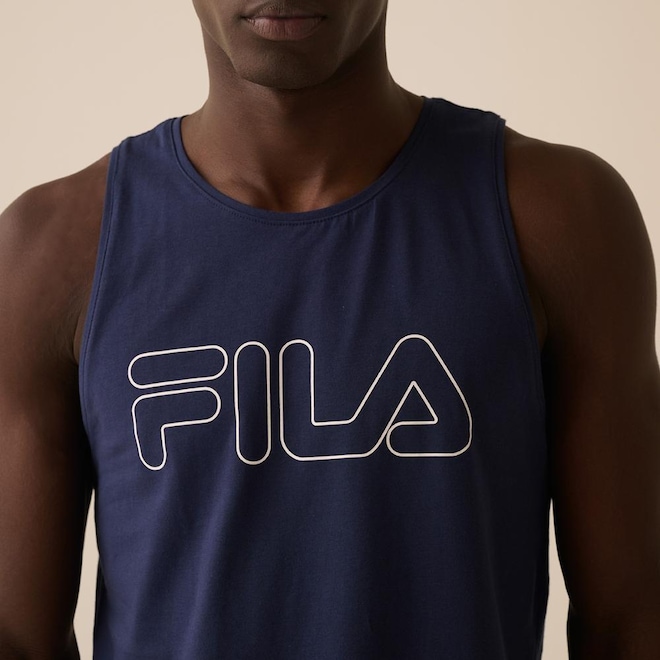 Camiseta Regata masculina confeccionada em meia malha premium de algodão na modelagem regular. Possui gola careca e cavas com acabamento em viés do próprio tecido, cobre gola institucional e maxi logo FILA Linear em silk centralizado na parte frontal superior.