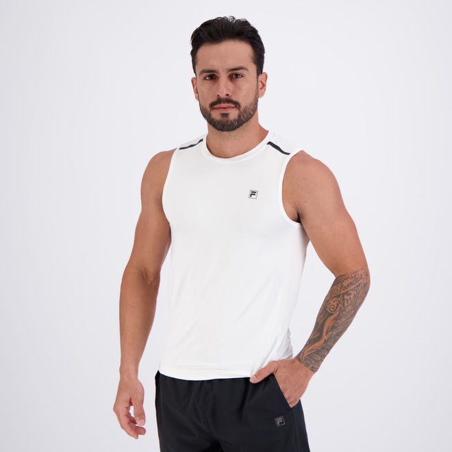 Tecnologia UV PROTECTION 50+: Protege a pele bloqueando mais de 98% dos raios UV, reduzindo os efeitos nocivos do sol durante atividades ao ar livre. Garante mais segurança e conforto nos treinos, mantendo a performance mesmo sob alta exposição solar. Composição: 94% Poliamida e 06% Elastano Cor predominante: Branca Indicado para: Treino Gênero: Masculino Origem: Nacional Logo: Estampada Manga: Regata Gola: Careca Dimensões aproximadas (A x L): P: 65 x 47 cm M: 66 x 50 cm G: 71 x 55 cm GG: 72 x 59 cm