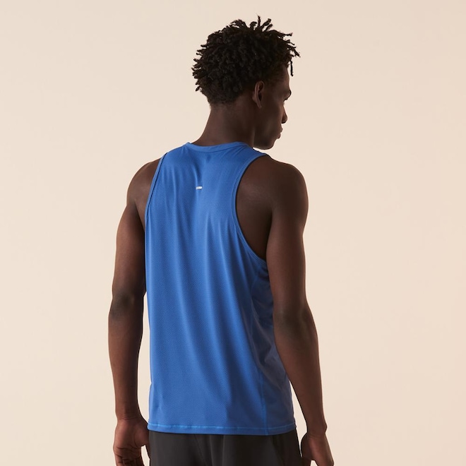Camiseta Regata masculina desenvolvida em malha de poliamida com elastano e tecido mesh respirável, garantindo leveza e conforto. Sua modelagem fit apresenta três tecnologias: BREEZE, que reduz a temperatura corporal em até 1,5C; FLOW, que proporciona respirabilidade superior; e proteção solar FPS 50+, que bloqueia os raios UVA e UVB. Para conforto máximo, a peça apresenta costuras sem atrito e recortes estratégicos nas laterais e nas costas em tecido mesh.