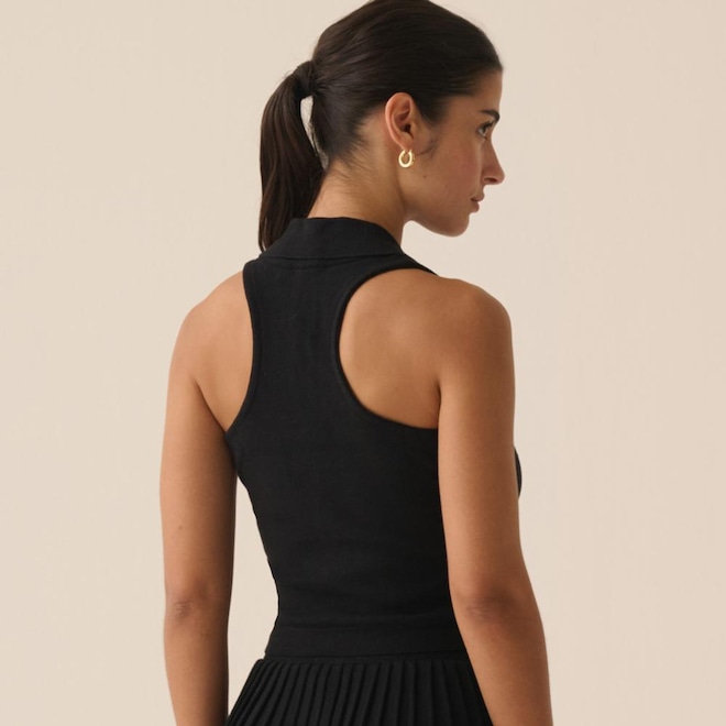Feita em tricô leve, a regata oferece um caimento suave e confortável. Os acabamentos delicados em 1 agulha demonstram a qualidade e o cuidado na confecção da peça.