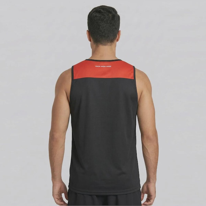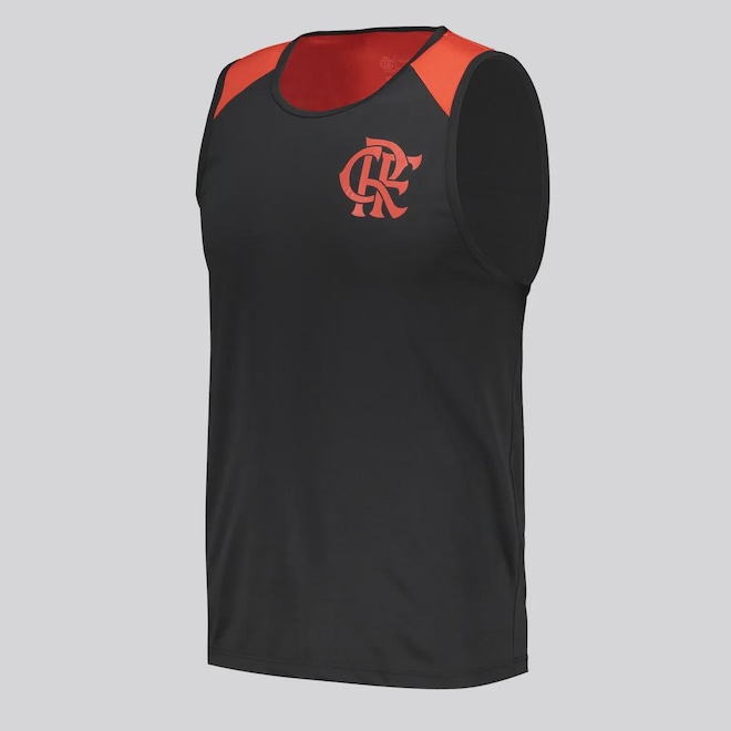 Composição: 100% Poliéster Cor predominante: Preta Indicado para: Casual Escudo: Estampado Gênero: Masculino Origem: Nacional Clube: Flamengo Manga: Regata Gola: Careca Dimensões aproximadas (A x L): P: 65 x 49 cm M: 67 x 53 cm G: 69 x 56 cm GG: 72 x 60 cm