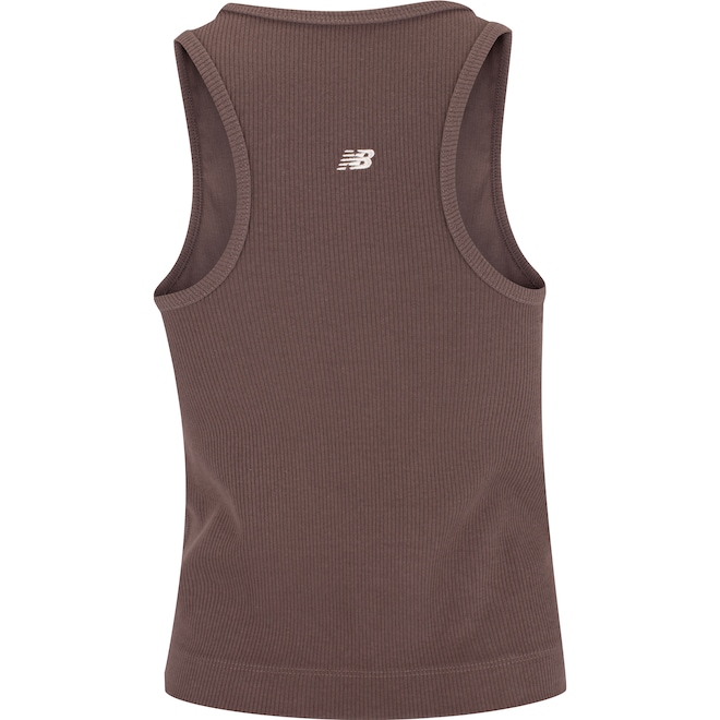 A Regata Feminina New Balance Canelada Small Logo tem caimento ajustado e textura canelada que valoriza o visual com conforto.