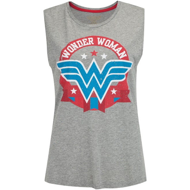 Conheça a Camiseta Regata Liga da Justiça Mulher-Maravilha College – Feminina!