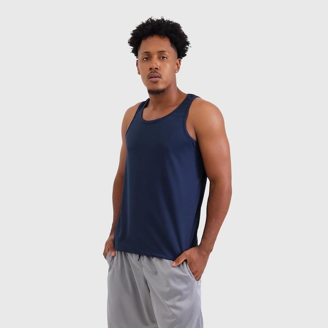 Com um design versátil e disponível nas cores , e azul marinho, esta camiseta regata masculina complementa qualquer guarda-roupa esportivo, permitindo que você treine com estilo em qualquer ambiente.