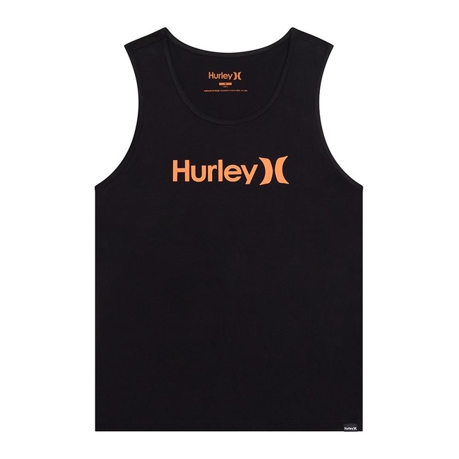 Regata Hurley feita em meia malha 30.1, gola rebatida, estampa localizada base d'agua e etiqueta clips ONE&ONLY na barra.