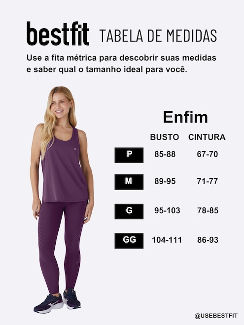 A Regata Nadador Enfim Active Malha Dry Feminina une respirabilidade e estilo para a sua rotina fitness. Com alças finas, caimento solto e tecido micro perfurado, ela oferece frescor e liberdade de movimento até nos treinos mais intensos. Eleve sua performance com conforto e leveza, escolha agora a sua! Especificações: Alças finas. Caimento solto. Leve e respirável. Tecido micro perfurado. Tecnologia Dry. Benefícios: Caimento solto promove liberdade total de movimento. Tecido micro perfurado com Dry evita o acúmulo de suor e calor. Alças finas garantem frescor e mobilidade nos ombros. Modelagem nadador valoriza a silhueta com estilo esportivo. Ideal para treinos, caminhadas ou uso casual com conforto. Composição: 100% Poliamida. Cuidados e Conservação: Lavar à mão ou em ciclo suave. Secar à sombra. Não usar alvejante. Não passar ferro diretamente sobre a peça. Evitar superfícies ásperas para não danificar a malha.