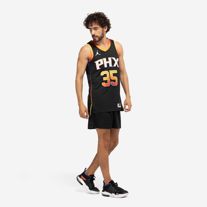 Entre no clima das grandes partidas com a regata Statement Edition do Phoenix Suns. Inspirada nos uniformes oficiais da NBA, essa peça oferece o visual autêntico dos profissionais com o conforto que os fãs precisam dentro ou fora das quadras.