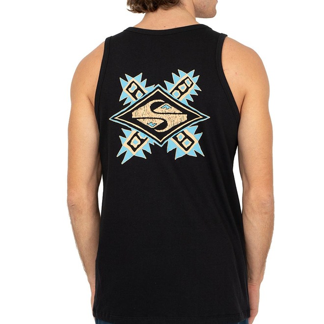 Regata QuikSilver feita em modelagem regular, meia malha, estampa na frente e costas e etiqueta da marca aplicada na bainha do lado esquerdo de quem veste.