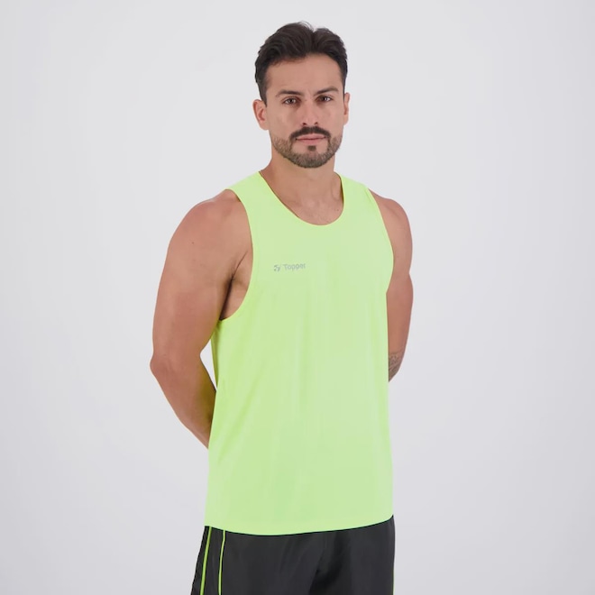 Composição: 94% Poliamida e 06% elastano Cor predominante: Verde Indicado para: Treino Gênero: Masculino Origem: Nacional Logo: Estampada Manga: Regata Gola: Careca Dimensões aproximadas (A x L): P: 67 x 50 cm M: 72 x 54 cm G: 73 x 56 cm GG: 76 x 59 cm