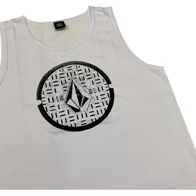 Regata Volcom feita em modelagem regular, meia malha 30.1, silk frontal e etiqueta interna.