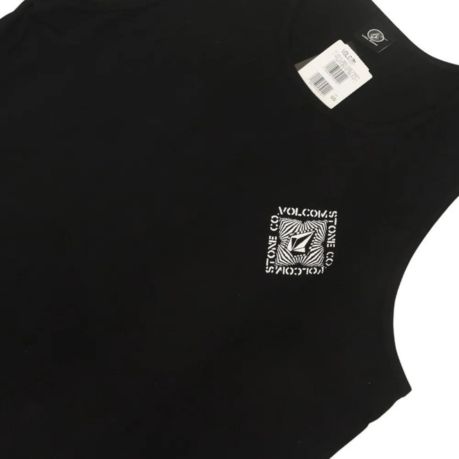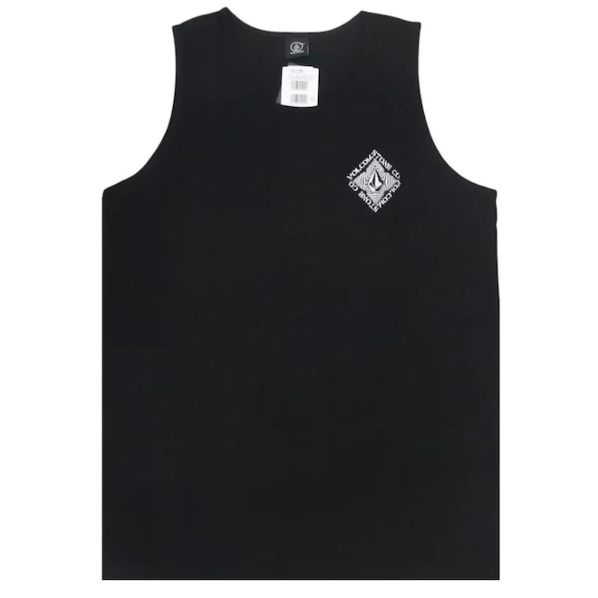Regata Volcom feita em modelagem regular, silk frente e costas e etiqueta interna.