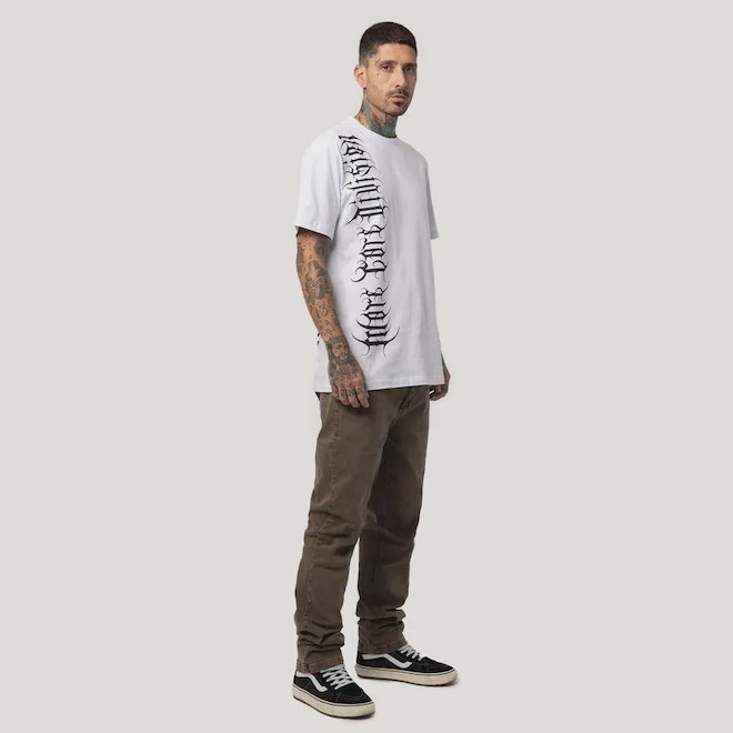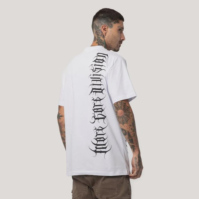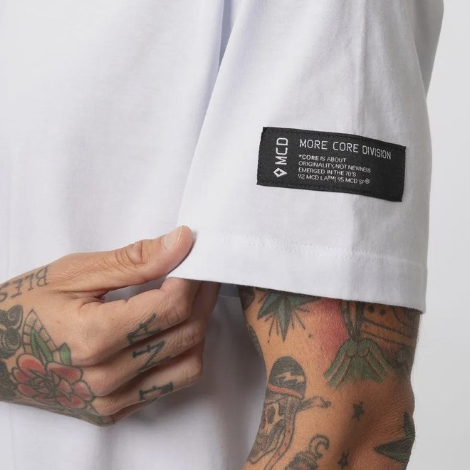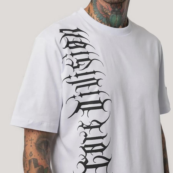 Herança da raiz californiana da MCD, uma linha que sempre está presente nas coleções, dessa vez com uma inspiração em tipografias de bandas de metal e estética gótica.ref: M17BSP
