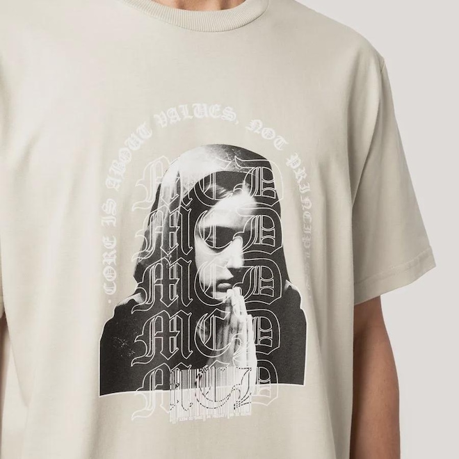 Presentes na identidade da MCD desde o começo, as imagens sacras carregam a identidade da marca. Essa linha traz a MCD como símbolo de adoração de forma artística, livre e atual, unindo símbolos sagrados à estética MCD.ref: M17DHY