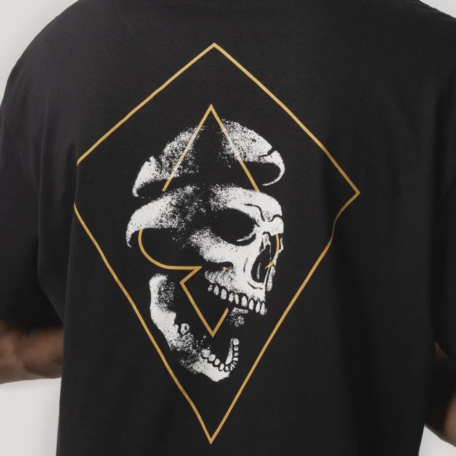 Imagens de caveira, um clássico na MCD, e outros elementos que passam por uma metamorfose e se desintegram em um novo formato.ref: M17CO8