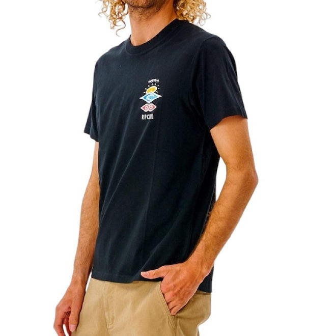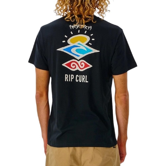 A Camiseta Search Icon Big da Rip Curl é feita em 1/2 malha penteada 26.1, 100% algodão, garantindo conforto e resistência. Com estampa frente e costas, tem gola redonda, mangas curtas e um corte regular fit Big Blokes, ideal para quem curte um ajuste mais amplo e confortável