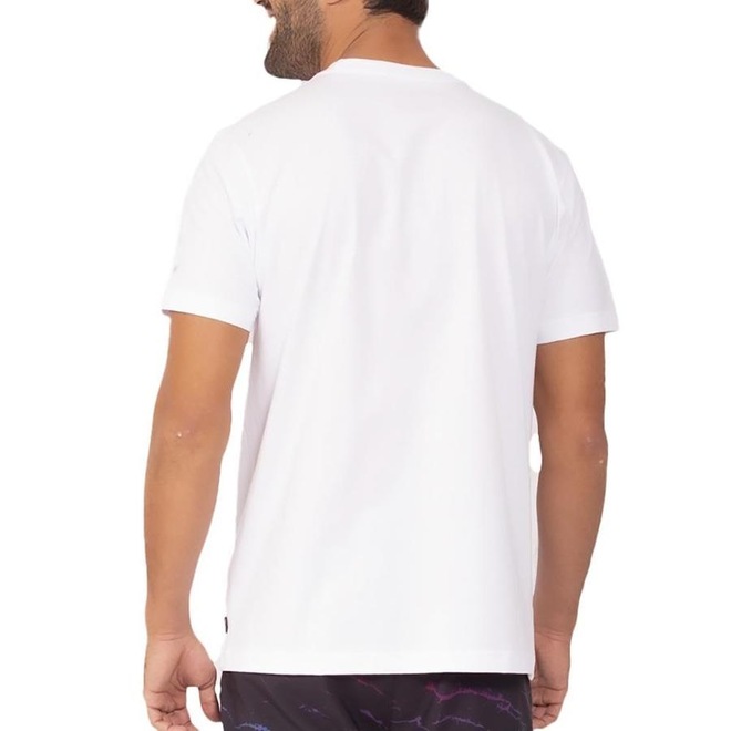 Camiseta Rip Curl meia malha 30.1 penteada, estampa localizada, etiqueta transfer na manga, modelagem relaxed fit e etiquetas personalizadas.