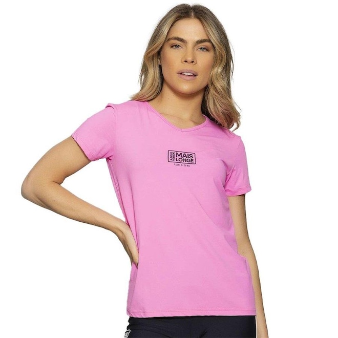 A Camiseta Run More Deco V Feminina apresenta decote V, shape soltinho. JVML corresponde às iniciais do slogan "Juntas Vamos Mais Longe", como pode ser visto na arte aplicada na frente da peça. Acreditamos que estamos todos juntos em uma corrida, não em competição, mas lado a lado para alcançarmos nossos objetivos. Tecido de poliamida com elastano. Leve, com toque macio e gelado. Ótimo caimento, não amassa. Tecnologia dry que auxilia no transporte da transpiração para o lado externo do tecido. Secagem mais rápida. Proteção UV50+. Perfeita pra você! 90% poliamida, 10% elastano;Proteção UV50+;Tecnologia Dry.ref: M1237S