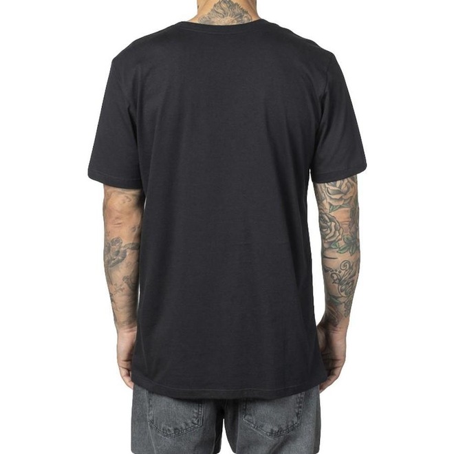 Camiseta meia malha 30.1 de algodão, com modelagem regular, estampa silk na parte frontal e etiquetas personalizadas.