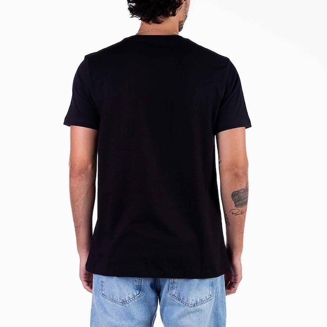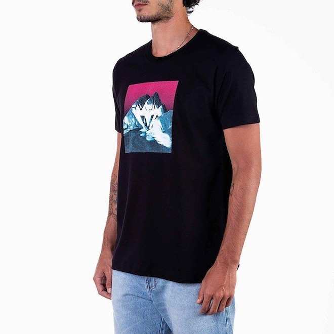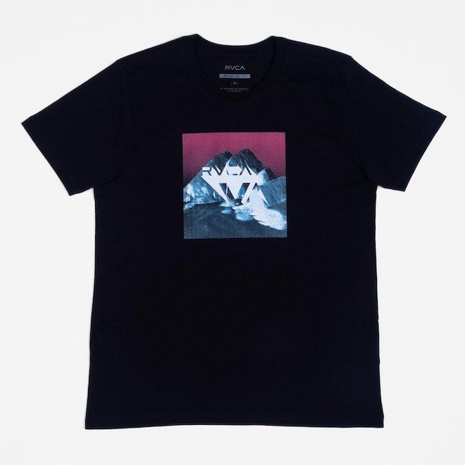 Camiseta RVCA meia malha 30.1 de algodão, modelagem regular, estampa silk logo na parte frontal e etiqueta frontal.