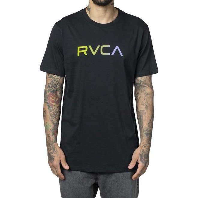 Camiseta RVCA meia malha 30.1 de algodão, com modelagem regular, estampa degradê na parte frontal e etiquetas personalizadas da marca.