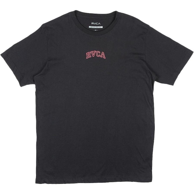 Camiseta RVCA manga curta meia malha 30.1 de algodão, modelagem regular, estampa silk logo puff RVCA na frente e etiquetas personalizadas.