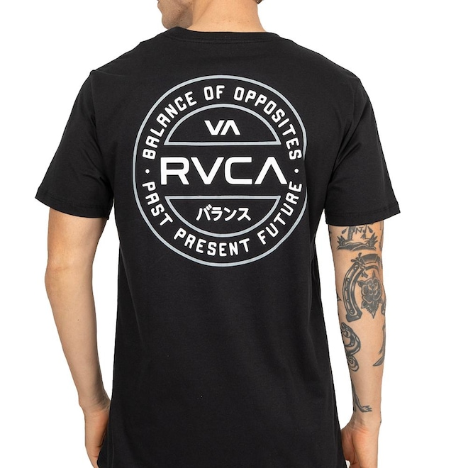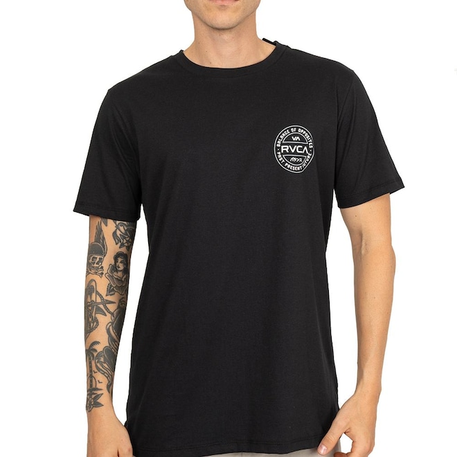 Camiseta Rvca feita em modelagem regular fit, malha 30.1 penteada, silk no peito, silk nas costas centralizado, silk interno e tag personalizado.