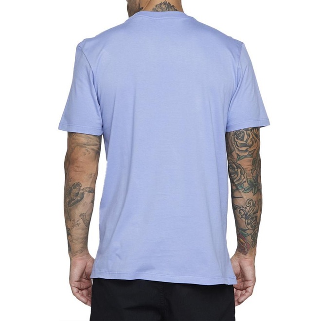 Camiseta Rvca feita em malha 30.1 penteada, modelagem regular fit (mais solta ao corpo para maior liberdade dos movimentos), estampa centralizada na frente, estampa interna de tamanho e tag personalizado.