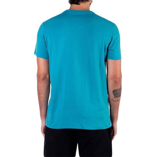 Camiseta RVCA especial meia malha 30.1 de algodão, modelagem slim, estampa na parte frontal e etiquetas personalizadas.