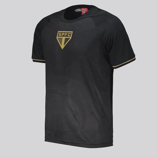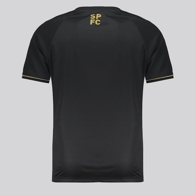 Composição: 100% PoliésterCor predominante: Preta Gênero: MasculinoEscudo: EstampadoClube: São Paulo Origem: NacionalManga: Curta Gola: Careca Dimensões aproximadas (A x L):P: 68 x 53 cmM: 70 x 55 cmG: 72 x 57 cmGG: 74 x 59 cmEG: 76 x 61 cm