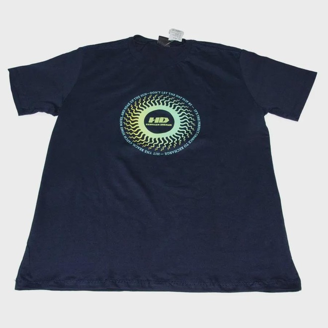 A Camiseta Masculina HD Sunwave Statement é uma celebração do lifestyle praiano e da energia tropical. Produzida em tecido confortável e resistente, ela oferece toque macio e excelente caimento para o dia a dia. O destaque da peça é a estampa circular com raios ondulados em tons de laranja, formando um sol estilizado que transmite vibração e movimento. No centro, o logo HD HAWAIIAN DREAMS aparece em letras marcantes, enquanto a frase ao redor - 'Don’t let the day slip by - it’s the perfect chance to recharge - hit the beach, catch some waves, and soak up the sun' - reforça o espírito leve e aventureiro da marca. Ref.: 1.H0426