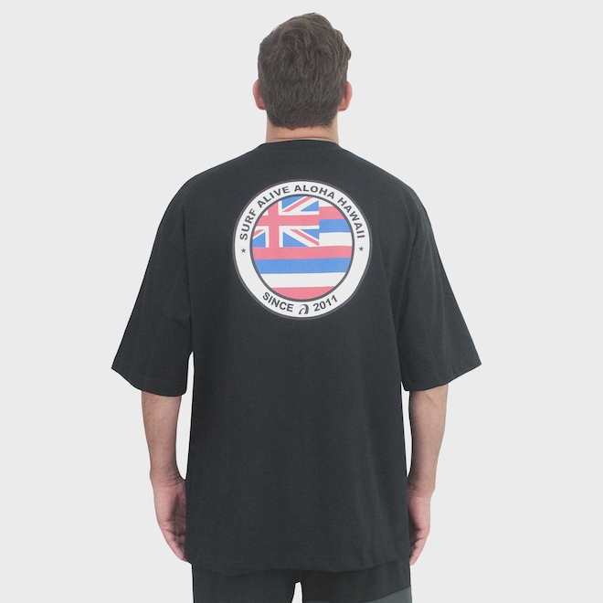 Camiseta Surf Alive Aloha Hawaii Oversized Preta