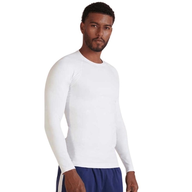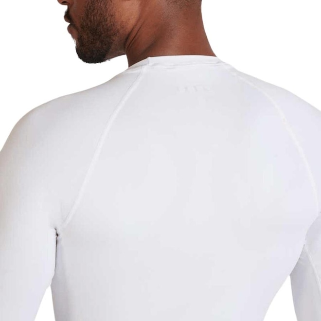 Camiseta manga longa térmica, que mantém a temperatura, com tecnologia Seamless Dry proporciona maior respirabilidade ao corpo e secagem rápida do suor. A peça é produzida com diferentes níveis de compressão que melhoram o contrapeso do músculo e a portura corporal, além do fio Amni-Off com ação antiviral e antibactericida.
