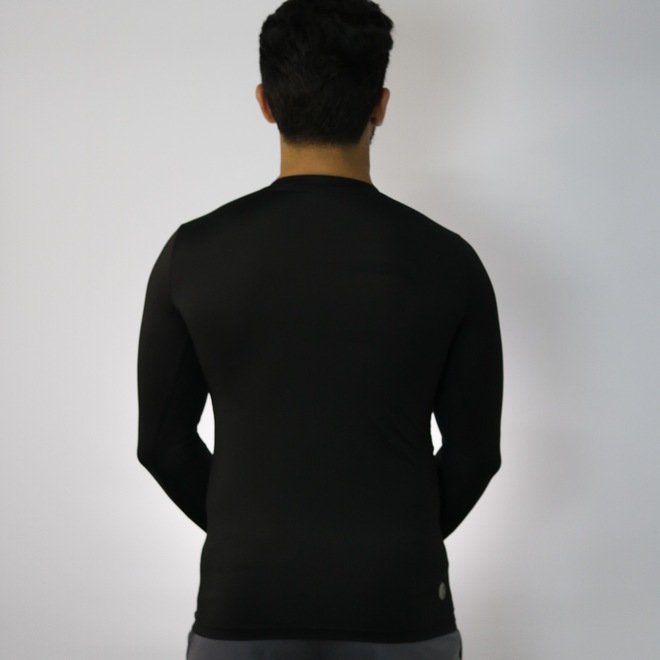 Desenvolvida para vestir rente ao corpo, ela auxilia na regulação térmica, mantendo a temperatura ideal durante a musculação, corrida ou qualquer atividade de alta performance. Confeccionada em uma combinação de poliéster e elastano, oferece elasticidade e conforto em todos os movimentos, além de facilitar a respirabilidade. Com mangas longas, gola redonda e o escudo estampado no peito, une funcionalidade e identidade esportiva em uma peça essencial no guarda-roupa fitness