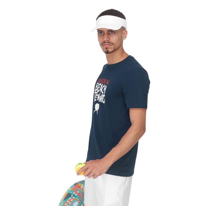 - Detalhamento: Camiseta manga curta, gola careca, com estampa Made in Beach Tennis e detalhe gráfico de raquetes, tecido macio e confortável, caimento tradicional;
