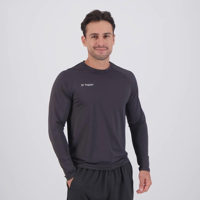 Composição: 94% Poliamida e 06% Elastano Cor predominante: Preto Gênero: Masculino Indicado para: Treino Origem: Nacional Logo: Estampada Manga: Longa Gola: Careca Dimensões aproximadas (A x L): P: 67 x 51 cm M: 70 x 54 cm G: 72 x 57 cm GG: 77 x 60 cm
