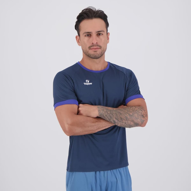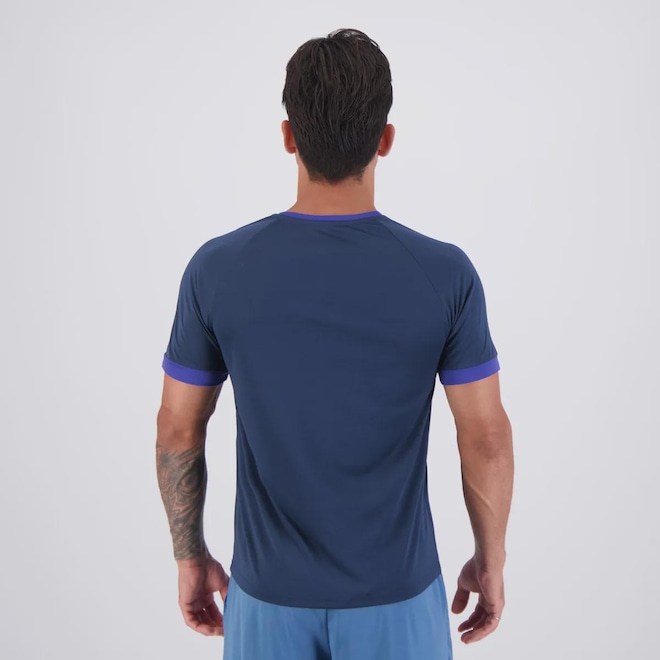 Composição: 100% Poliéster Cor predominante: Azul Indicado para: Treino Origem: Nacional Logo: Estampada Manga: Curta Gola: Careca Dimensões aproximadas (A x L): P: 67 x 49 cm M: 71 x 51 cm G: 73 x 55 cm GG: 76 x 57 cm EG: 78 x 59 cm