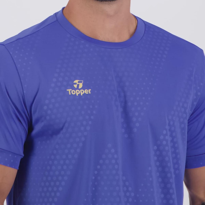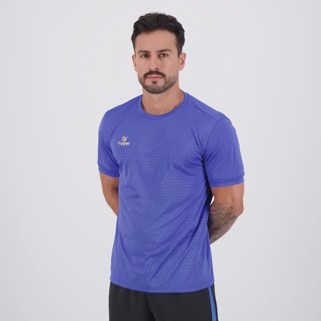 Composição: 100% Poliéster Cor Predominante: Azul Gênero: Masculino Indicado para: Treino Origem: Nacional Logo: Estampada Manga: Curta Gola: Careca Dimensões aproximadas (A x L): P: 68 x 51 cm M: 71 x 53 cm G: 73 x 57 cm