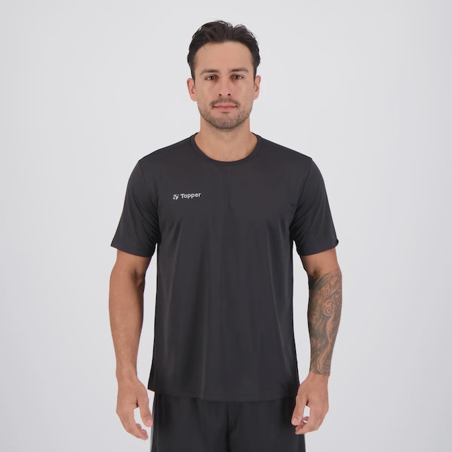 Composição: 100% Poliéster Cor predominante: Preta Indicado para: Treino Origem: Nacional Logo: Estampada Manga: Curta Gola: Careca Dimensões aproximadas (A x L): P: 67 x 53 cm M: 69 x 55 cm G: 72 x 58 cm GG: 76 x 61 cm
